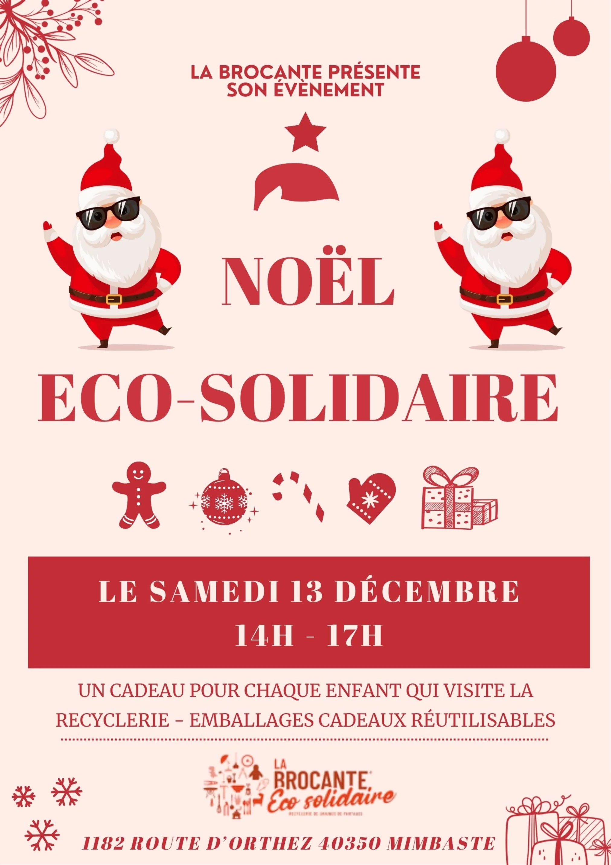 La brocante présente son évènement ''Noël Eco-Solidaire'' Le samedi 13 décembre de 14h à 17h. Un cadeau pour chaque enfant qui visite la recyclerie!