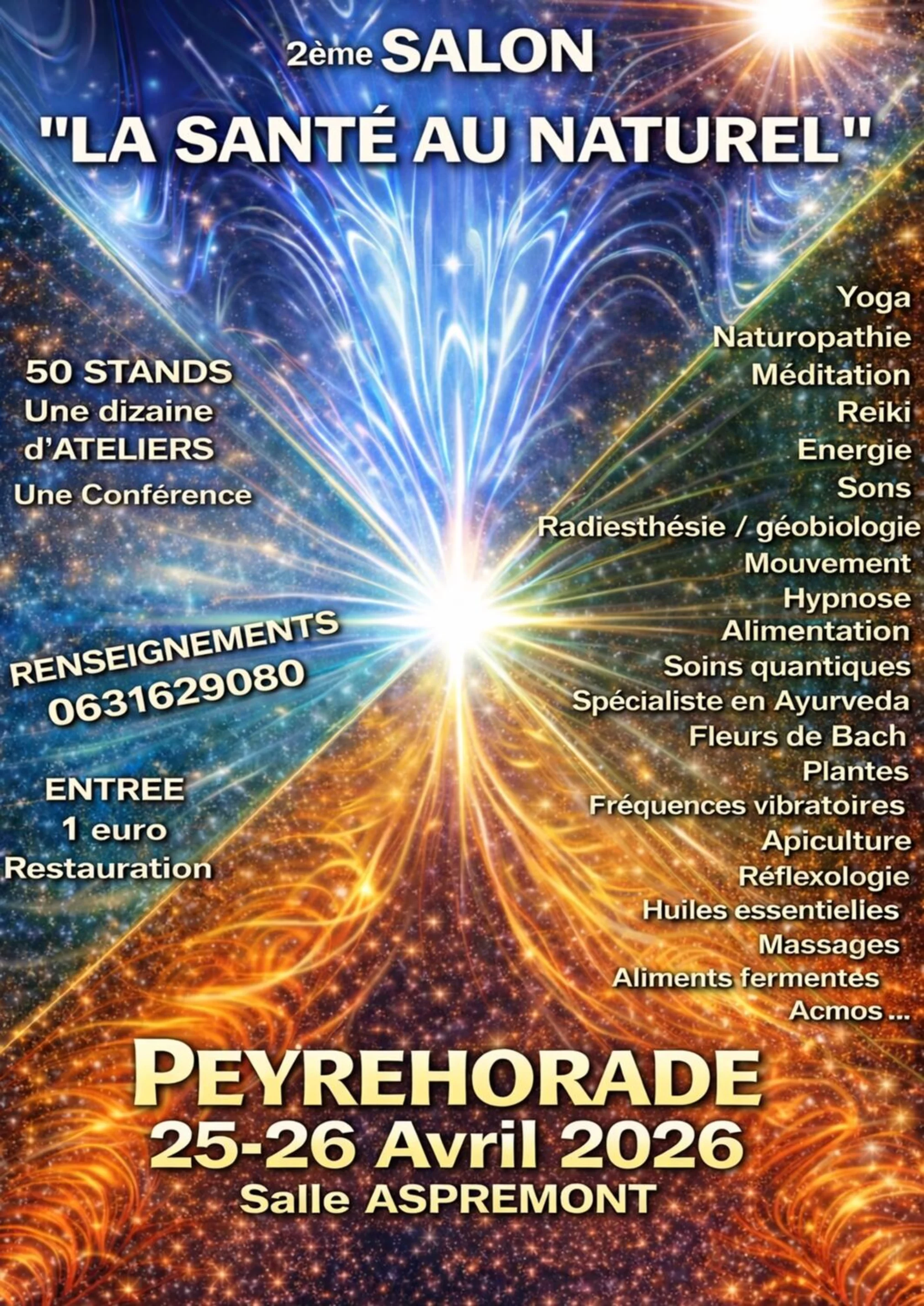 Deuxième grand salon de "la santé au naturel" à PEYREHORADE les 25 et 26 avril 2026 à la salle d'Aspremont.