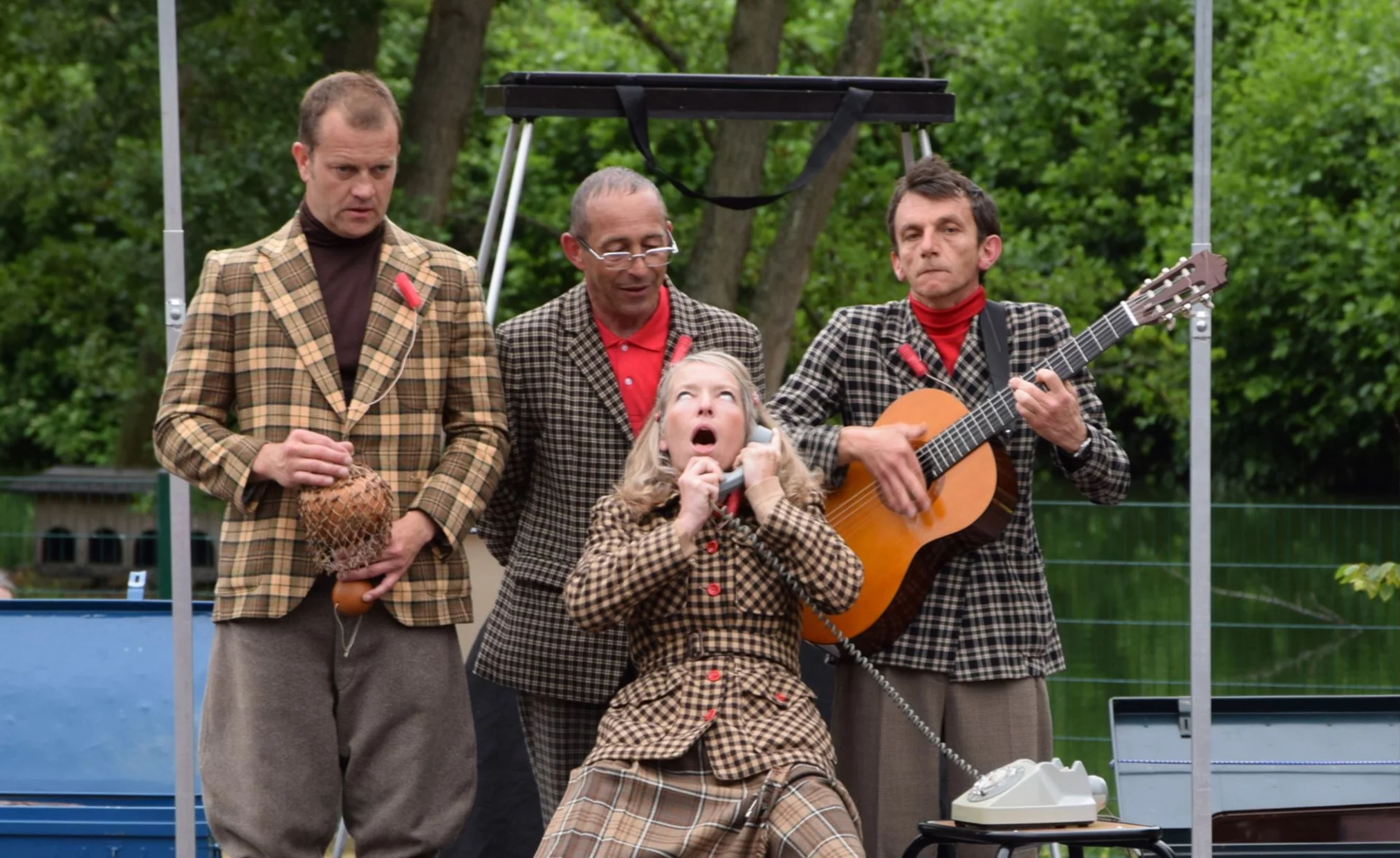 Quatre imbéciles heureux bénéficient d’une autorisation de sortie pour présenter le spectacle musical qu’ils ont créé à la sueur de leur imagination. Une occasion exceptionnelle pour eux de livrer leur vision fantaisiste de la musique et de la mise en scène. Un spectacle brut de décoffrage et complètement timbré, porté par la folle envie de profiter d’une permission accordée ! Un récital fantaisiste, hors des sentiers battus et franchement irrésistible. Les comédiens avec leurs personnages à la Buster Keaton sont solaires et attendrissants.