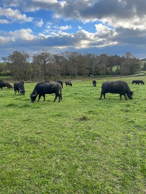 Located in Tilh, Champ des Bufflonnes is the result of a family adventure led by two sisters, Adeline and Delphine. They decided to take over the family business and start breeding buffaloes and processing their milk.