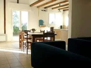 Casa tradicional restaurada en un entorno tranquilo con grandes espacios abiertos. Todas las comodidades: lavavajillas, lavadora, secadora, horno, microondas, nevera-congelador, aire acondicionado, 1 cuarto de baño con bañera y ducha en la planta baja, 1 cuarto de baño con ducha arriba. 2 WC, 1 de ellos en la planta baja. 2 dormitorios grandes con 1 cama de 140 cm, 1 camarote con 2 camas de 90 cm, ropa de baño disponible para alquilar. AccesoWIFI. Terraza cubierta, barbacoa, patio privado y aparcamiento, gran jardín y piscina a compartir. A 2km de los comercios, a 30km de las playas, a 1h de España.