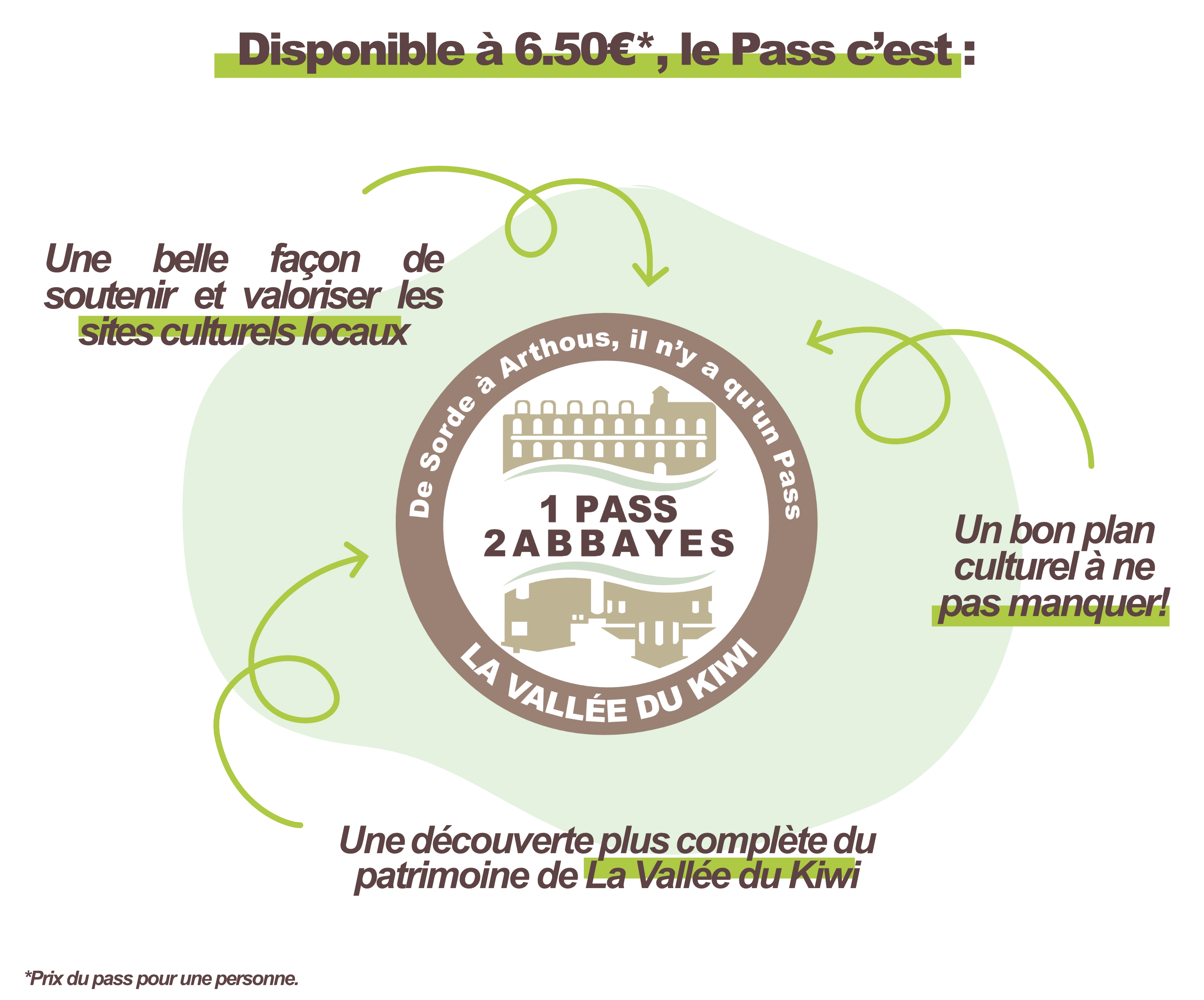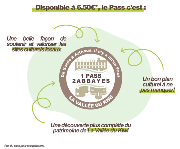 C'est là tout l'esprit du Pass 2 Abbayes de la Vallée du Kiwi: une invitation à voyager entre deux sites d'exception tout en profitant d'avantages tarifaires. Une belle occasion de se cultiver, de s'émerveiller et de prendre le temps - sans choisir entre les deux ! Chaque abbaye possède son caractère. Ensemble, elles offrent une lecture complète du patrimoine local. Passer de l'une à l'autre, c'est changer d'époque, d'ambiance, de regard… tout en restant sur le même territoire.