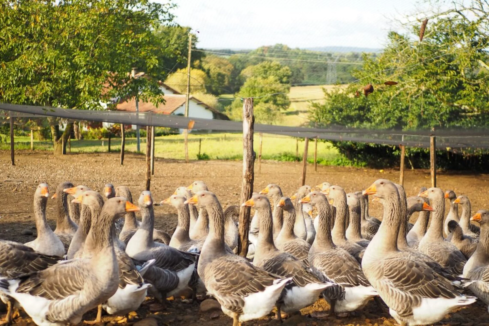 No dude en venir hasta la granja, Marie-Pierre le hará visitar su laboratorio a las normas CEE y el conjucto de la granja con las explicaciones detalladas sobre los productos : foie gras y confits de oca y de pato. Las ocas son alimentadas al maíz producido por la granja, como en la pura tradicción.