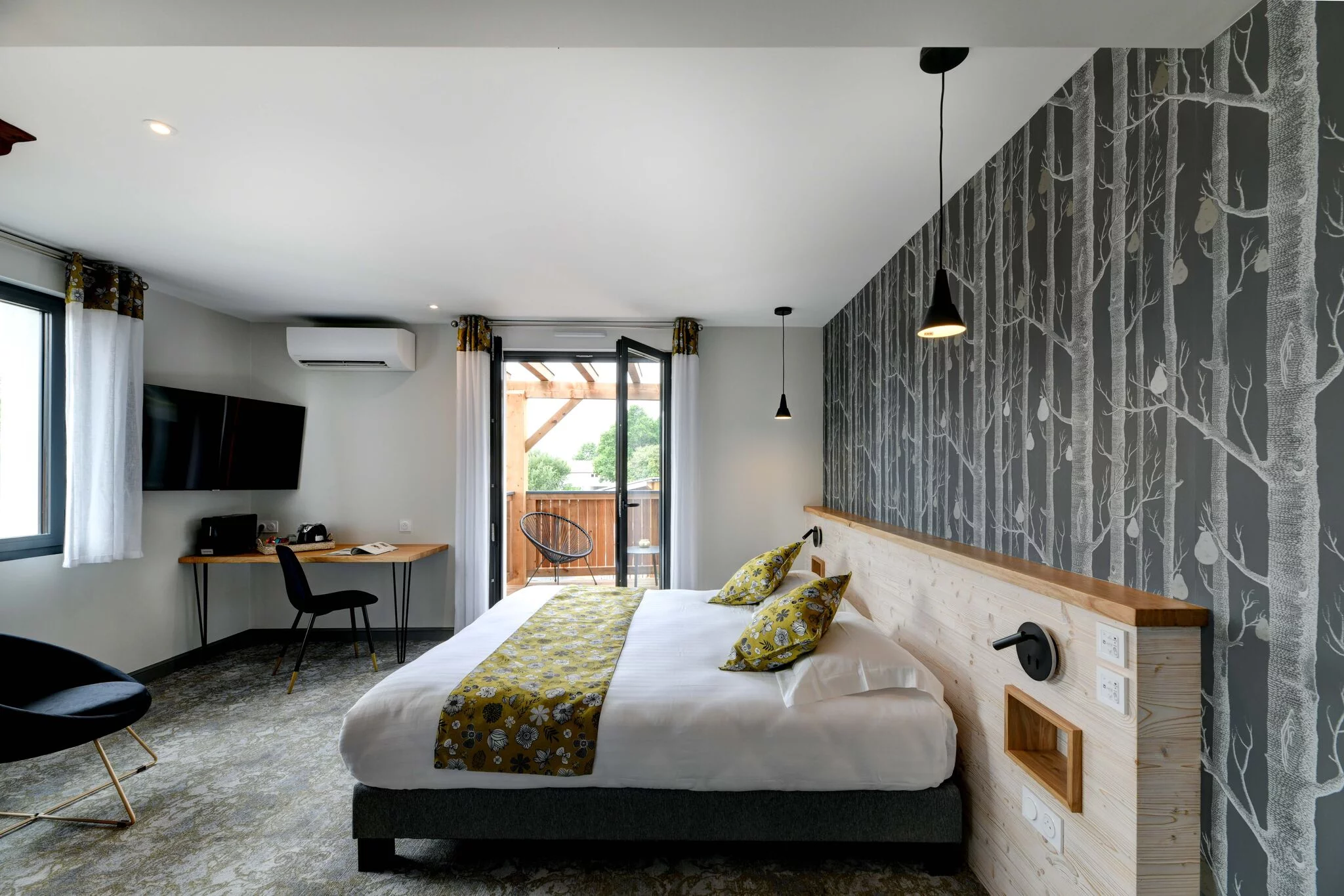 Gnàc & Pause, c'est un restaurant lumineux de 80 couverts, 19 chambres climatisées avec Chromecast et un espace séminaire/réception pouvant accueillir jusqu'à 50 personnes.